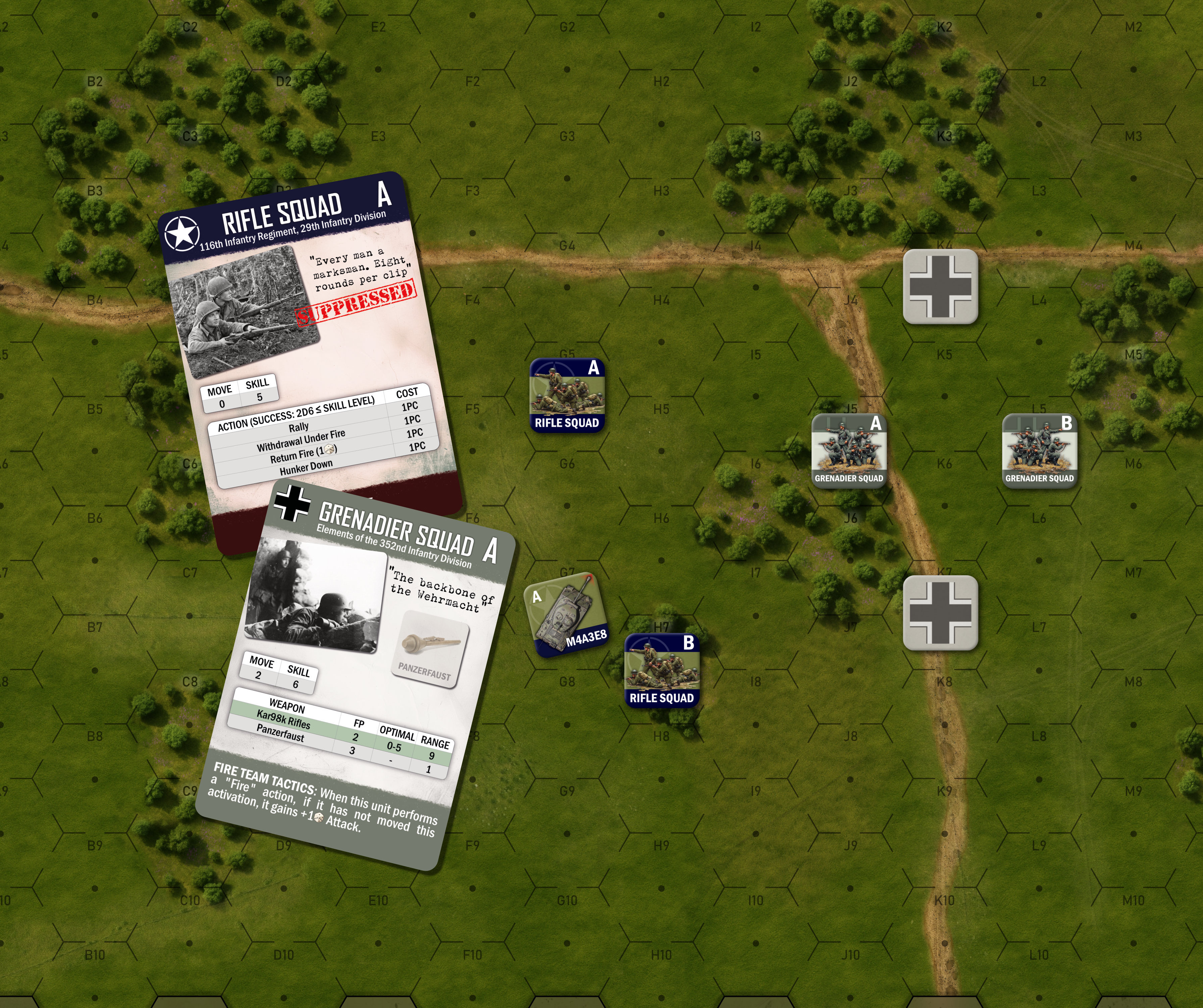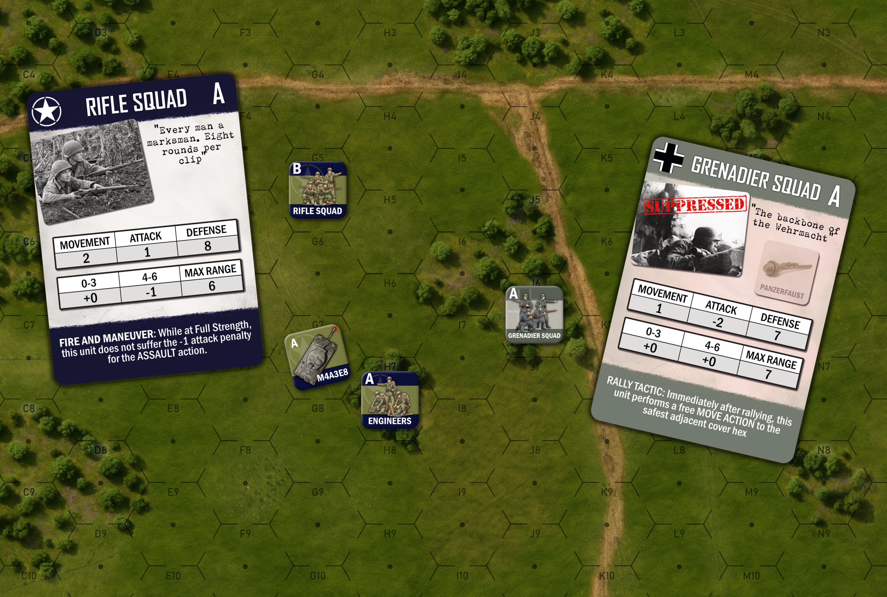 Steel Front: Sherman 1944 is a solitaire wargame that puts you in control of a Sherman tank during the Battle of France in 1944. As the tank crew, you'll face off against a game-controlled German side.